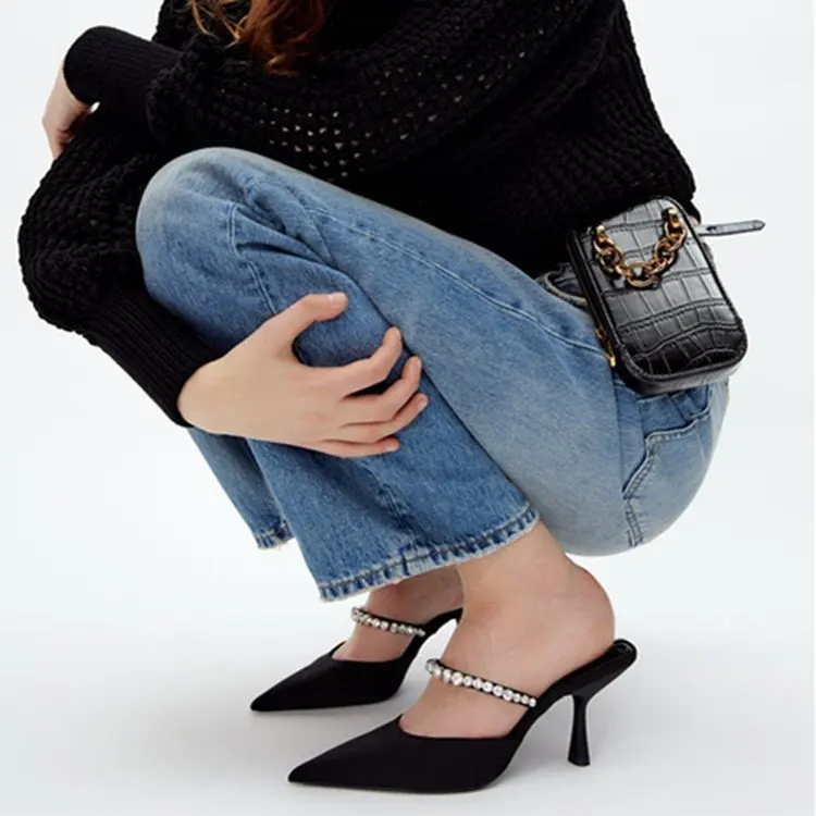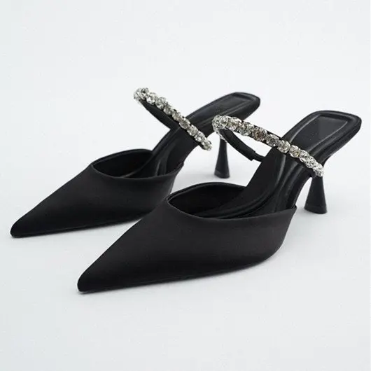 Women's Summer Fashion Sandals Mueller's Plus Size Pointy High Heels with Rhinestones Slip-On Closure Sexy Style for Women